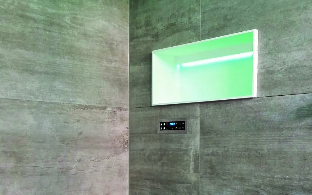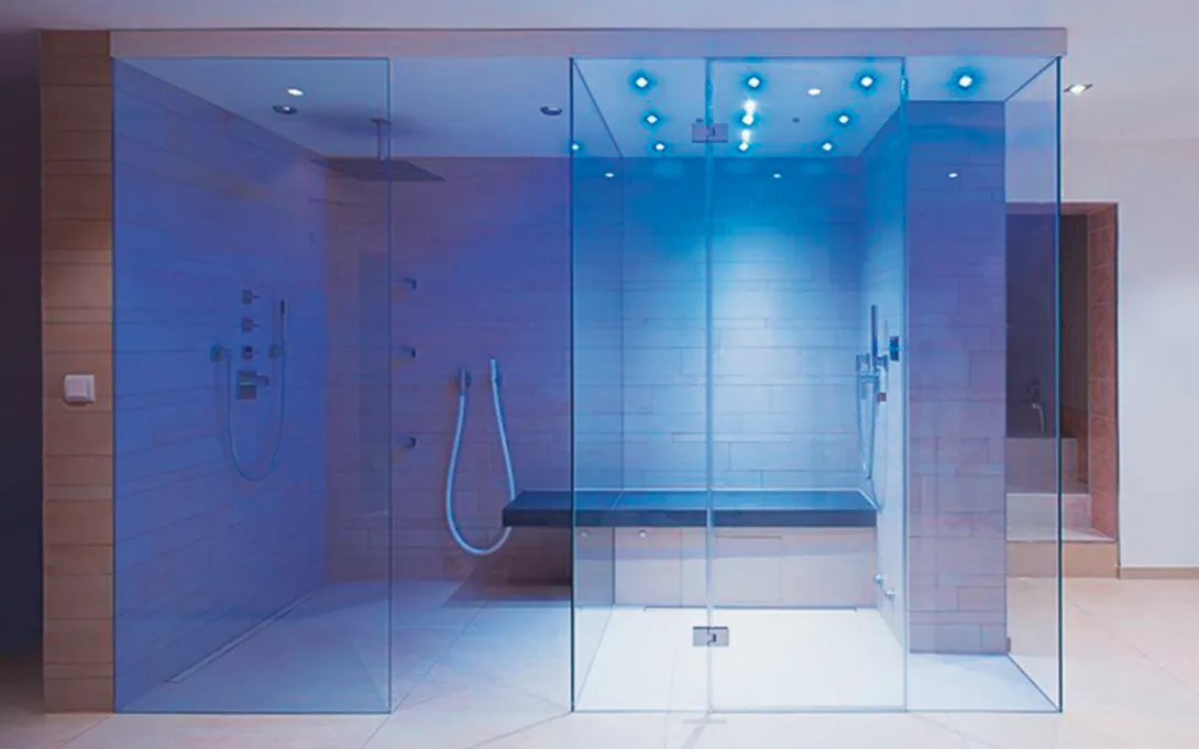 LED-Scheinwerfer sorgen für stimmungsvolles Licht beim Dampfbad.