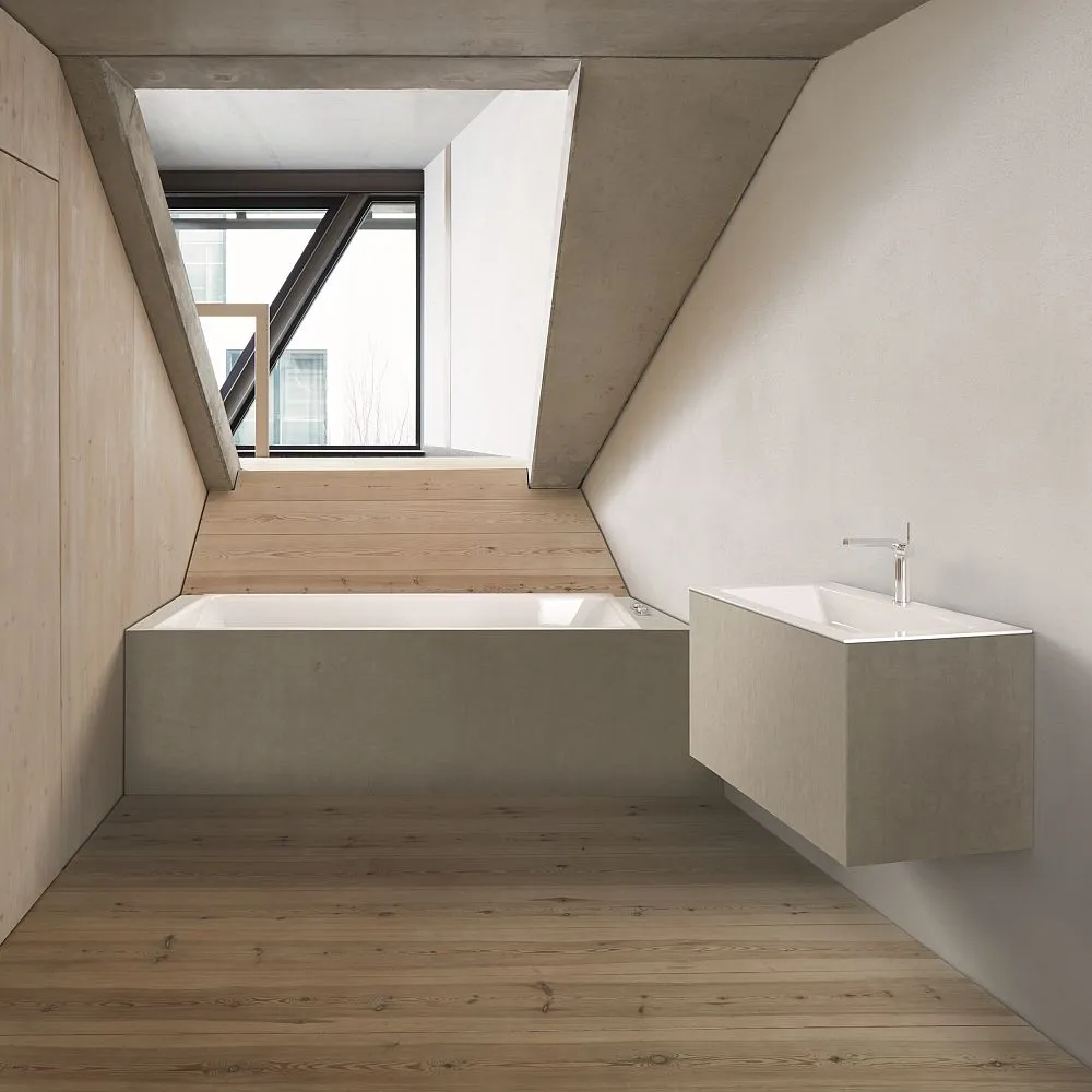 Die Badewanne, in optischer Leichtigkeit und robuster Materialität. Mit BetteSuno lassen sich minimalistische Badinszenierungen in architektonisch anspruchsvollen Projekten planen.