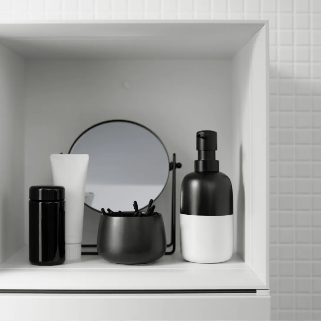 Ergänzend zu Möbeln und Waschtischen bietet Eqio passendes Zubehör. Dazu gehören Abdeckplatten, Regale, Stoffkörbe sowie die optionalen Ablaufabdeckungen für CleanFlow wie das cleanFlow+ Ventil, das die Stauraumfunktion um eine komfortable Push-to-open-Lösung erweitert. So wird Dein Waschplatz nicht nur praktisch, sondern auch hygienisch und komfortabel.