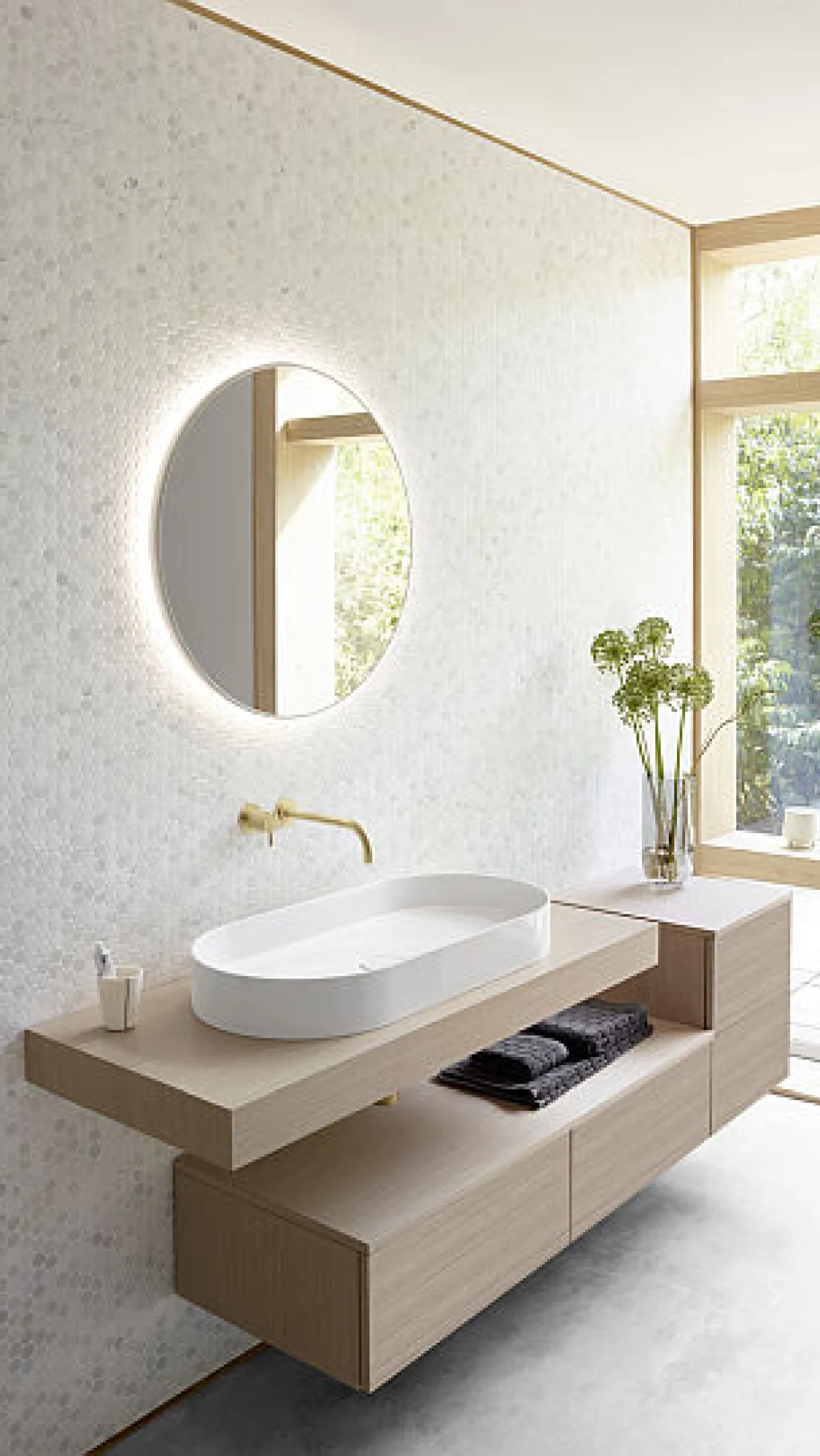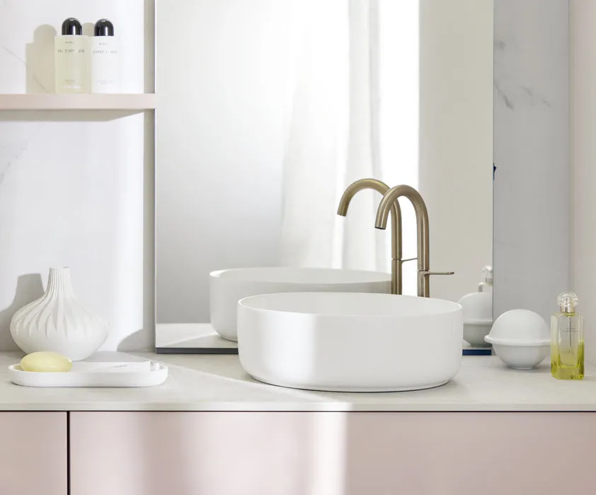 Händewaschen, Zahnhygiene und Make-up, aber auch Ablage­fläche und Aufbewahrungsort: Der Wasch­platz ist das Herz des Bade­zimmers. Deshalb gebührt ihm besondere Aufmerksam­keit, wenn es darum geht, Funktionalität und Optik mit dem Gesamt-Design des Bades in Ein­klang zu bringen.