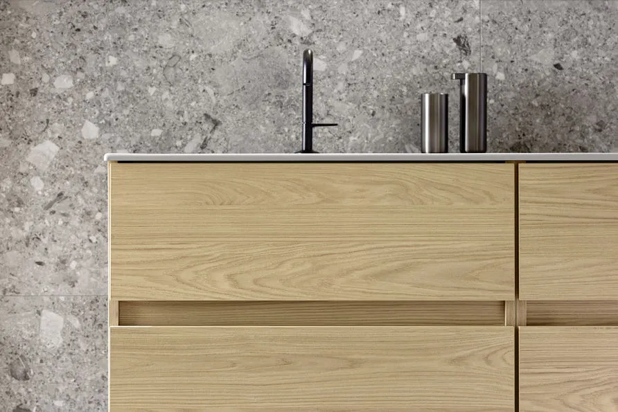 Die sys30-Serie umfasst eine Vielzahl an Schränken und Sideboards, die sich harmonisch in jedes Badezimmer integrieren lassen. Sie bieten vielfältige Stauraumlösungen für unterschiedliche Raumsituationen, von kleinen Nischen bis hin zu großzügigen Flächen. Die Möbel sind in verschiedenen Oberflächen und Dekoren wie Holzoptik, Matt- und Hochglanzlackierungen erhältlich. Für die Gestaltung stehen über 20 Griffvarianten sowie grifflose Lösungen mit Tip-On, Soft-Close oder durchgehender Griffmulde zur Verfügung. Dank der maßflexiblen Planung sind auch anspruchsvolle Sonderlösungen kein Problem.