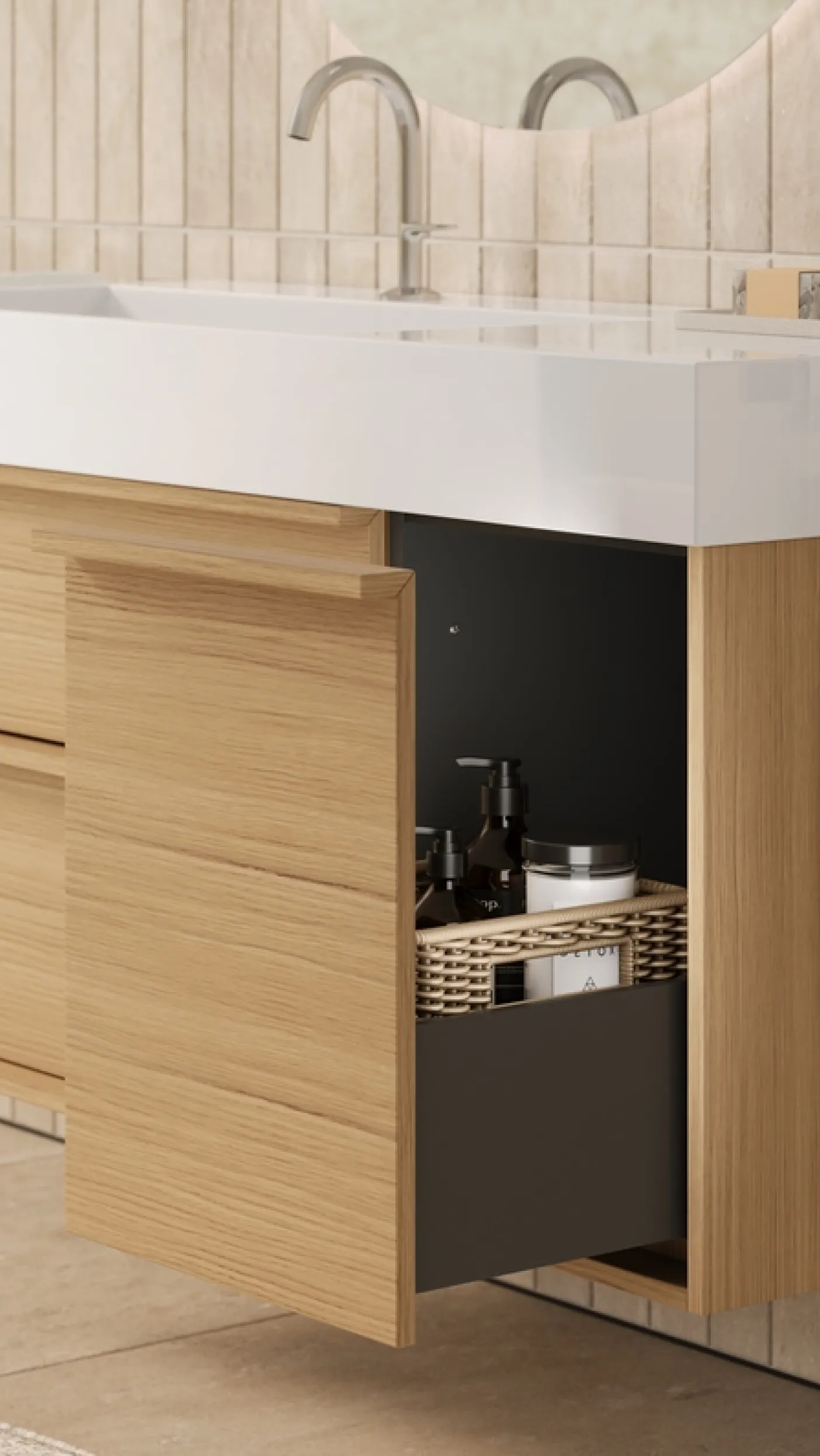 Händewaschen, Zahnhygiene und Make-up, aber auch Ablage­fläche und Aufbewahrungsort: Der Wasch­platz ist das Herz des Bade­zimmers. Deshalb gebührt ihm besondere Aufmerksam­keit, wenn es darum geht, Funktionalität und Optik mit dem Gesamt-Design des Bades in Ein­klang zu bringen.