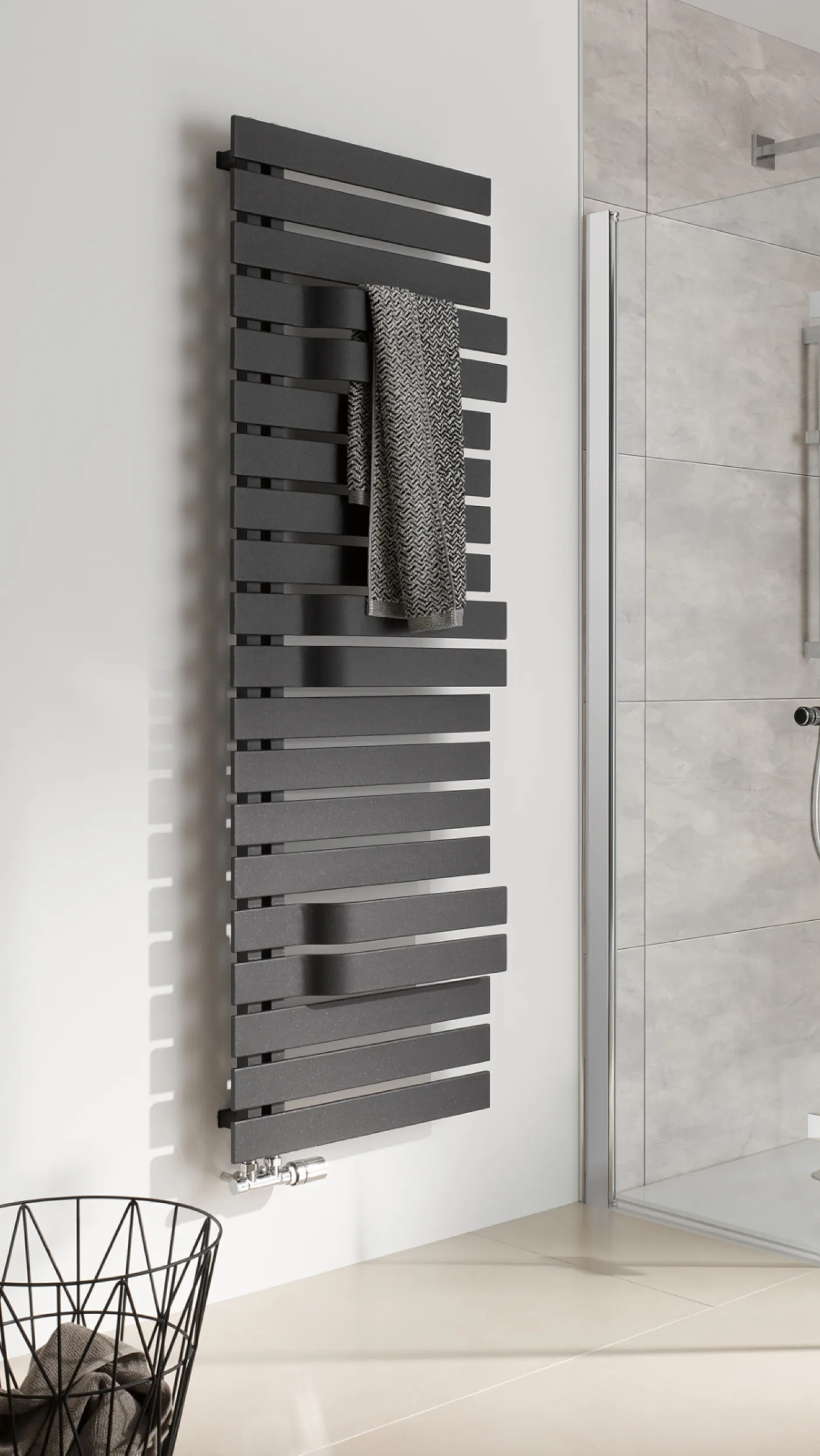 Den Designheizkörper Yenga gibt es jetzt auch als Plus-Modell. Er verfügt über herausstehende Heizlamellen, die das Aufhängen und Vorwärmen von Handtüchern ermöglichen. Sein markanter Look macht ihn zu einem echten Design-Element. Mit zwei unterschiedlichen Größen passt er in jedes Badezimmer und rundet so Ihr Wohlfühlerlebnis perfekt ab.